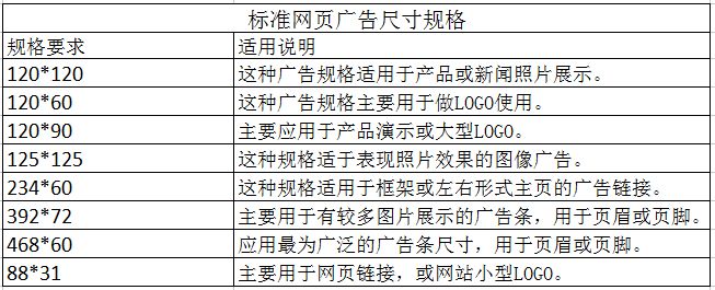 標(biāo)準(zhǔn)網(wǎng)頁(yè)廣告尺寸規(guī)格
