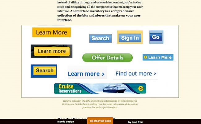 抓住界面各個(gè)部分的截圖,并收集在Keynote或Powerpoint中。你會(huì)得到一堆的素材,包括按鈕、文本字段、標(biāo)題、圖像、圖標(biāo)等,然后你可以將它們分類。此過程有助于避免出現(xiàn)界面前后不一的情況,也可以為模式庫奠定基礎(chǔ)。