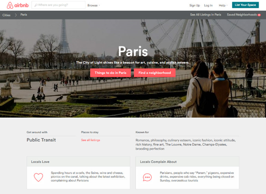 Airbnb的地址頁在內(nèi)容多樣性方面很值得我們學習。每個頁面都有各自的照片來代表每個城市?!爱?shù)厝讼矚g”和“當?shù)厝吮г埂贝蟠笤黾恿四康牡氐奈Α?/span>