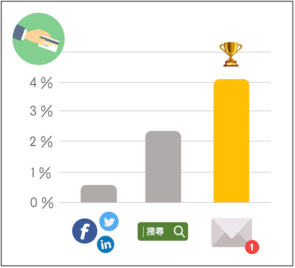 來自電子郵件的使用者進(jìn)行消費(fèi)的比例和轉(zhuǎn)換率,高于來自社群媒體和搜索引擎的使用者。 (Icon from flaticon)