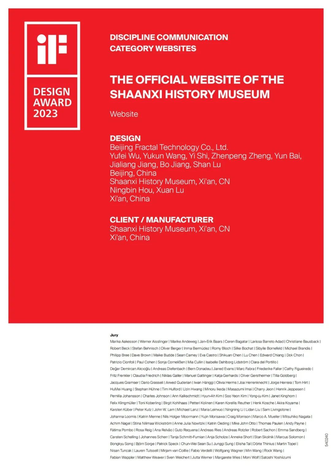 由北京分形科技有限公司設(shè)計(jì)開發(fā)的【陜西歷史博物館官方網(wǎng)站】榮獲2023年iF設(shè)計(jì)獎(jiǎng)!